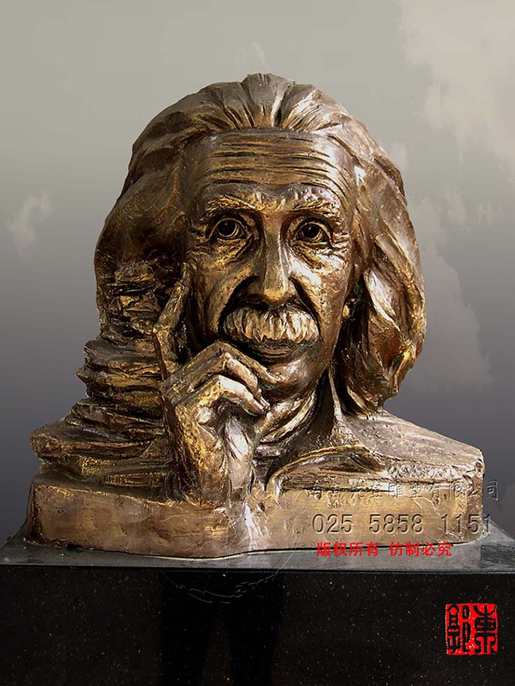 雕塑作品是雕塑家個人內(nèi)心的情感和表達欲望情感的載體、宣揚精神層面的介質(zhì)。愛因斯坦的雕塑塑造的是智慧與仁義的結(jié)合,他的人生在不斷探索、思考中感染著人類。藝術(shù)家索取的就是愛因斯坦散發(fā)出的人格魅力,他是世界的公民,他的愛建立在人道主義情懷之上,不屬于哪一個國度,藝術(shù)家無需精雕細琢,不是色彩的感覺,是內(nèi)蘊情感的流露,猶如匕首刺向偽君子的面具,真實的面對生活,從事嚴謹?shù)目茖W研究。那是什么樣的文化孕育出世紀的偉人,是什么樣的審美心理塑造出的永恒。
