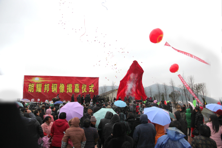 來自全國墾荒隊(duì)員、普通群眾及美術(shù)界人士自發(fā)冒雨參加胡耀邦巨像揭幕式