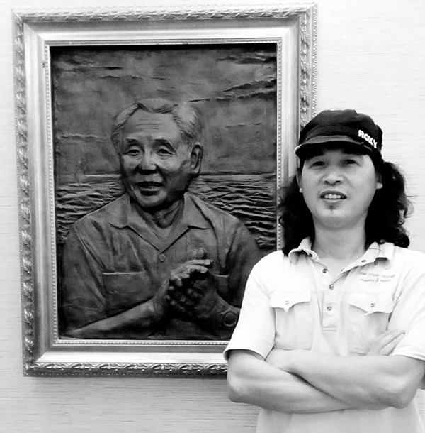 東郭與他創(chuàng)作的浮雕《春天的故事》