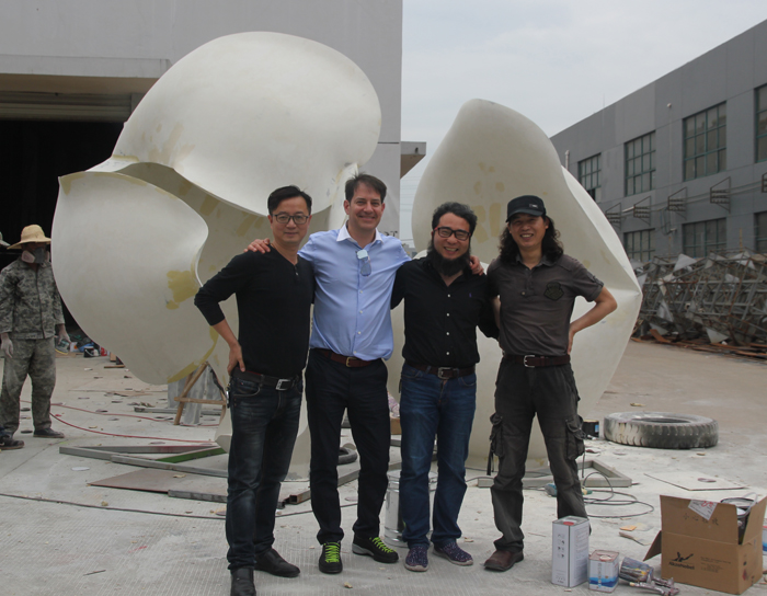 南京先登雕塑不銹鋼雕塑作品《天使之吻》創(chuàng)作完成,歐洲特使尼古拉斯到訪中國表示祝賀,尼古拉斯對該作品所傳達愛的巧妙構思和極具現代古典主義感染力的創(chuàng)造表示高度贊賞。該作品由著名雕塑家郭愛軍和鄭德東教授首度聯合創(chuàng)作,兩位藝術家對雕塑《天使之吻》作品在通過用抽象了的玫瑰花瓣構筑的作品醞釀多年,幾易其稿。作品通過生命張力的美好形象,讓觀眾對愛的憧憬,寄予浪漫的期許和想象。為江蘇洋河農業(yè)嘉年華——愛情主題館點燃了愛的浪漫火焰。