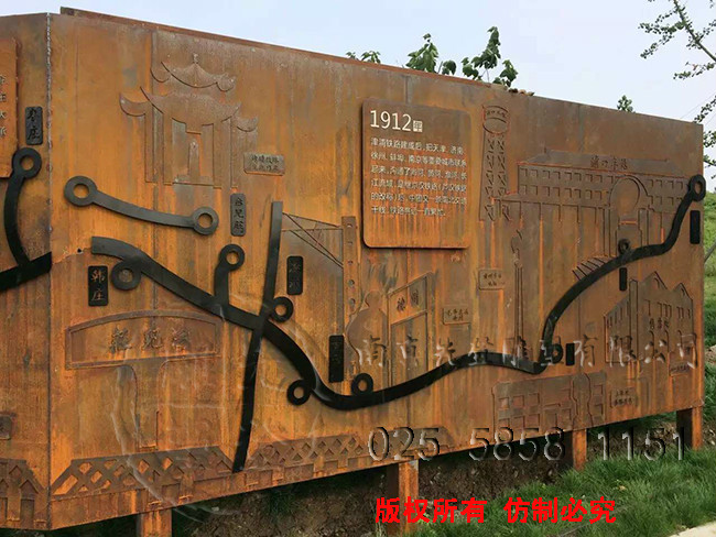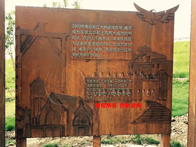 鋼板浮雕《老鐵路》2016年4月安裝于南京市浦口區(qū)滁河邊