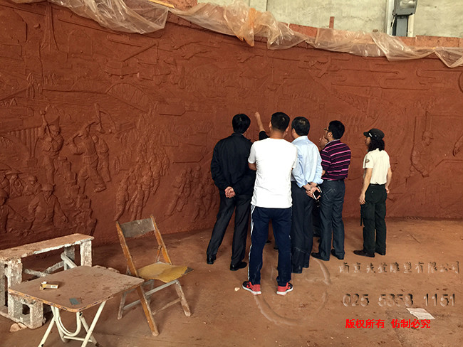 浮雕創(chuàng)作現(xiàn)場(chǎng),相關(guān)各機(jī)關(guān)領(lǐng)導(dǎo)蒞臨聽取工程介紹