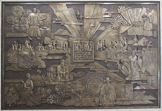 南京鍛銅浮雕設(shè)計(jì)、制作、運(yùn)輸、安裝,內(nèi)容可度身設(shè)計(jì),材質(zhì)為紫銅、黃銅,厚度1.2-1.5毫米,造型古樸大方。