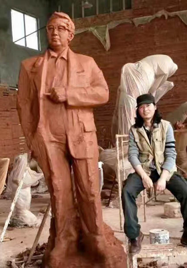 雕塑家東郭為路遙塑像,泥雕創(chuàng)作中